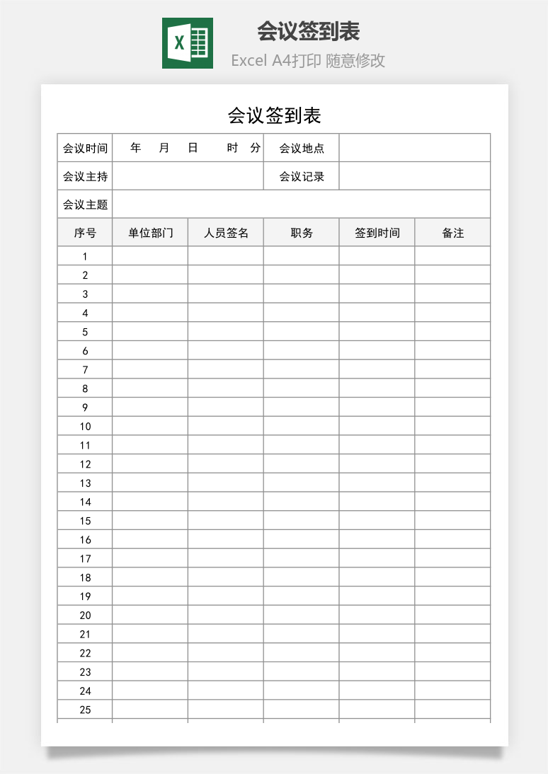 本模板为会议签到表,文字图片可以直接替换,使用简单方便